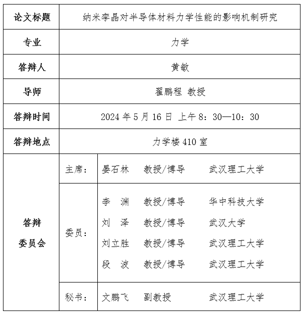【理学院】博士学位论文答辩公告(黄敏、孙雅婧)