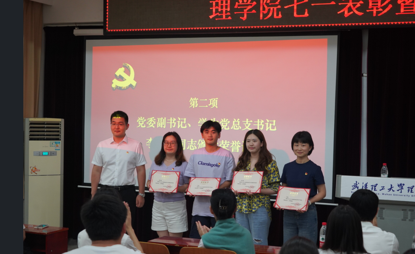 学生党总支副书记、学工办主任李佩同志宣读了学院《关于表彰学生先进基层党组织和优秀共产党员的决定》,党委副书记李振华同志为受表彰代表颁发荣誉证书。
