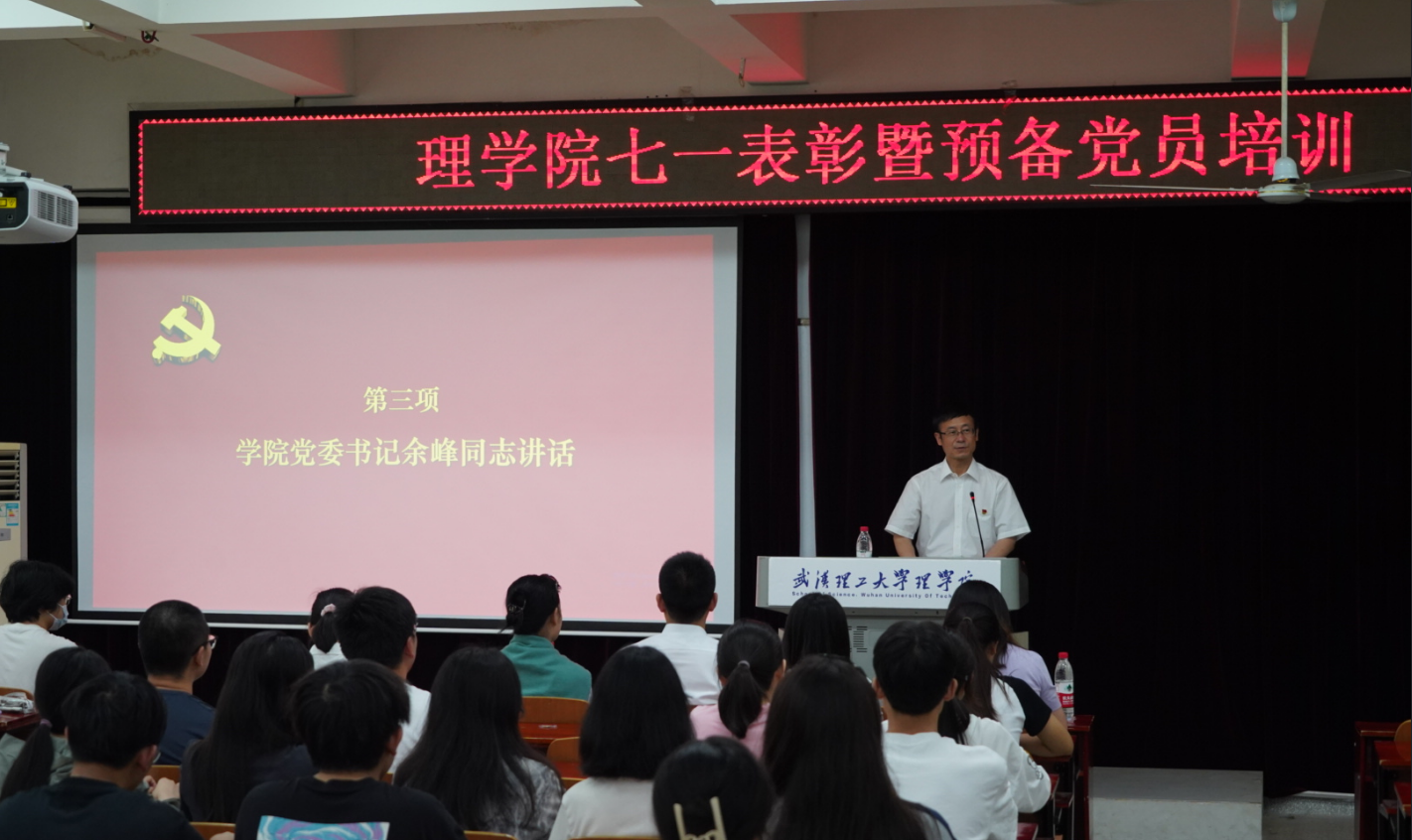 发布时间:2023-07-016月30日中午,理学院在理办312会议室召开“七一”表彰暨预备党员培训。理学院党委书记余峰同志、党委副书记李振华同志、学生党总支副书记张建红同志、各学生党支部委员、全体辅导员出席,预备党员以及受表彰的学生党员代表共同参会。会议由王孝松同志主持。